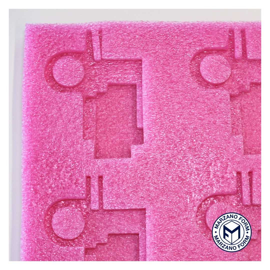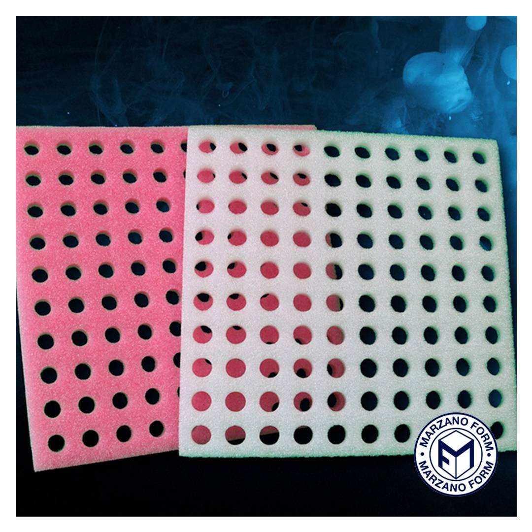 Disponiamo di materiale come il polietilene espanso o antistatico o conduttivo, poliuretano liscio o bugnato, polistirolo. Il tutto in varie dimensioni e densità.